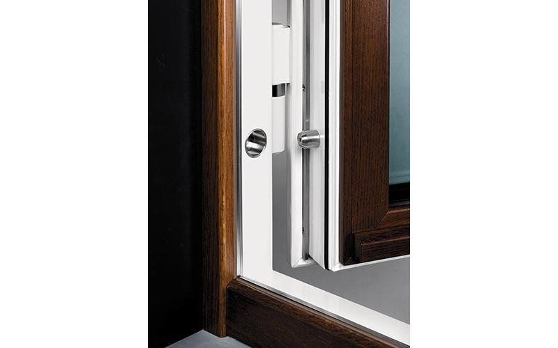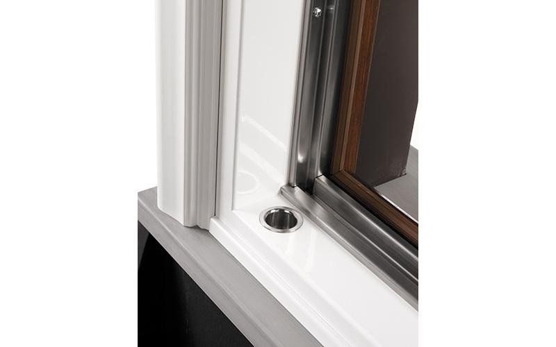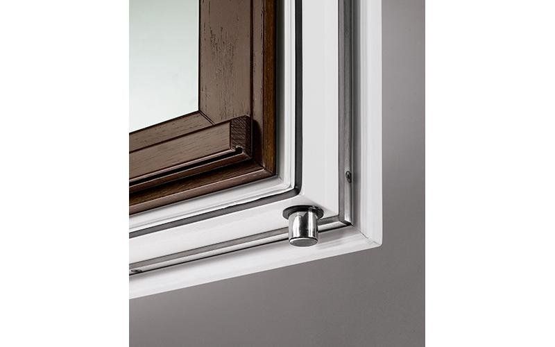 Una finestra termoacustica blindata ed antiterrorismo, realizzata su misura in acciaio verniciato a forno ad una temperatura di 180°. La finestra è completamente rivestita con pregiate essenze di legno massello. All'interno vengono inserite lamiere in acciaio antitaglio e antiproiettile, fino a FB6 7,62 NATO + 5,56. La finestra è predisposta per l’inserimento di vetri corazzati 3300 joule. Dotazione di speciale serratura di sicurezza che aziona i catenacci in acciaio inox mm. 25, unitamente ai rostri antistrappo in acciaio inox mm. 25 posizionati sul montante verticale lato cerniere che si inseriscono in apposite boccole in acciaio inox, garantiscono la massima tenuta allo sfondamento.